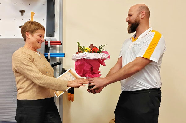 Auch Frau Mirha Maslesa zog es im Oktober 2020 zu uns nach Laufamholz. Nach ihrer Pause im Mutterschutz stieg sie sofort wieder engagiert ein, bildete sich kontinuierlich weiter und erweiterte unser Angebot im Bereich KG-Gerät, um eine weitere fähige Therapeutin.